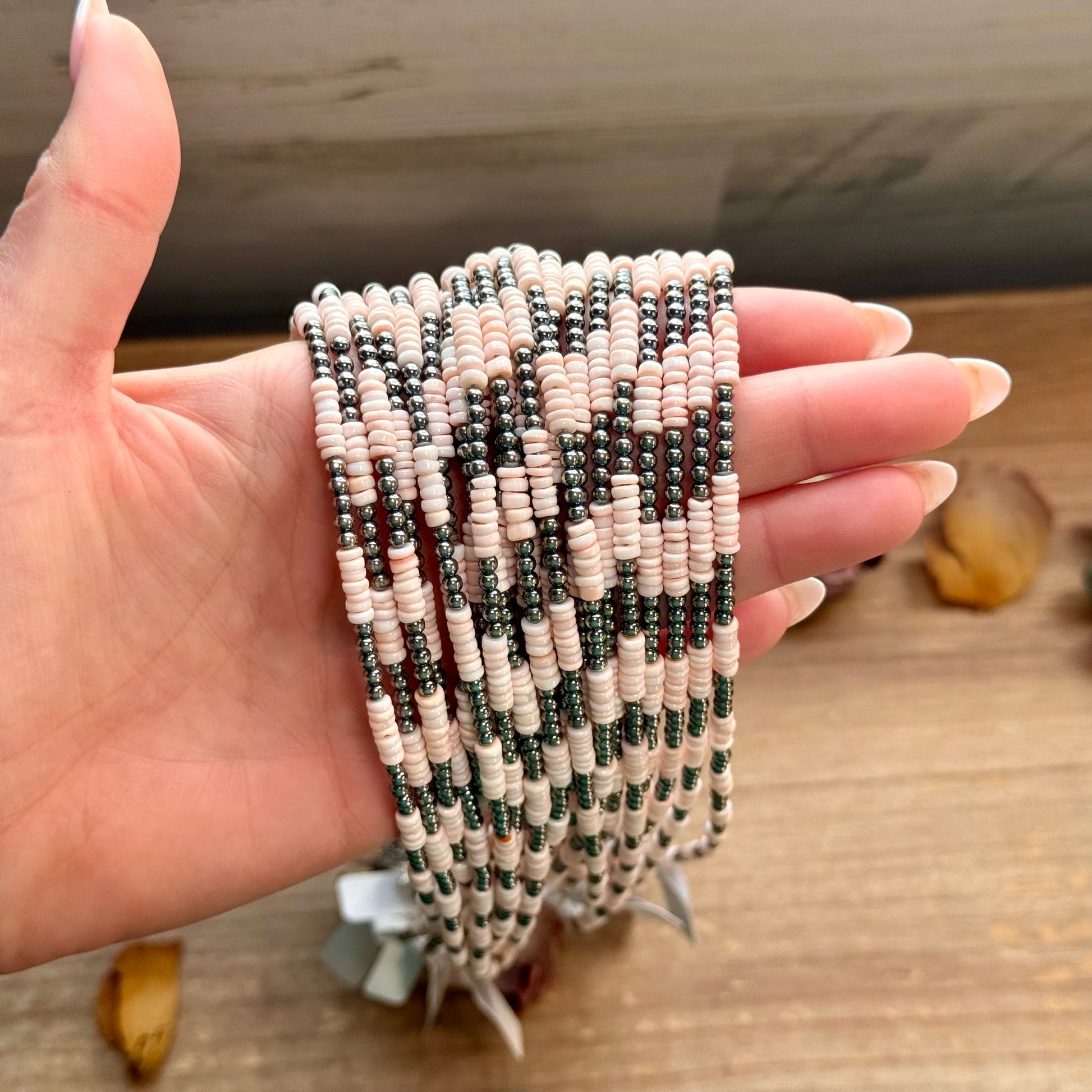 • Pink conch shell heishi beads